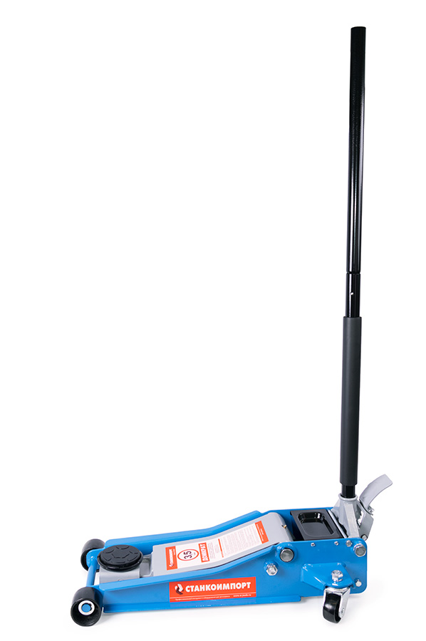 Подкатной гидравлический домкрат имеет ручной привод и предназначен для подъема машины при осуществлении ремонтных работ — к примеру, замены колес. Он отлично подойдет для личного использования на даче, в гараже или для работы на небольшой шиномонтажной станции.