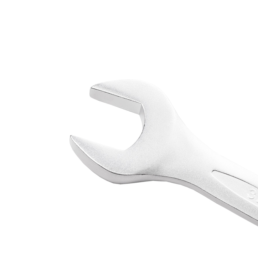 Финишная обработка Soft matt и хром никелевое покрытие комбинированного ключа обеспечивает надежную защиту от коррозии, а также надежный хват и препятствует выскальзыванию инструмента из рук. 12-гранный профиль накидной части подходит к головкам болтов и гайкам как 6-, так и 12-гранного профиля, и обеспечивает 5 градусный шаг перехвата. Специальный отгиб, в 15 градусов накидной части ключа позволит работать в местах с ограниченным доступом к крепежу и поможет подобраться к крепежу как с торца, так и с боку, в зависимости от места выполняемых работ.