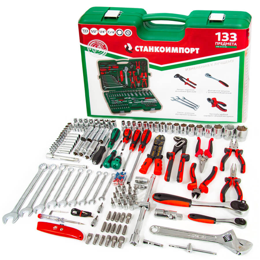 В наборе собраны основные инструменты, необходимые при проведении большинства слесарно-монтажных работ в гараже и автосервисе.