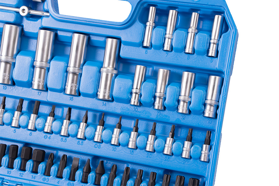 Отвертки, торцевые головки и биты основных типоразмеров выручат в разных ситуациях. Трещоточные ключи имеют механизм 72 зуба с шагом 5° и помогут раскрутить гайки в труднодоступных местах. Карданы и удлинители нужны для еще более эффективного решения задач.
