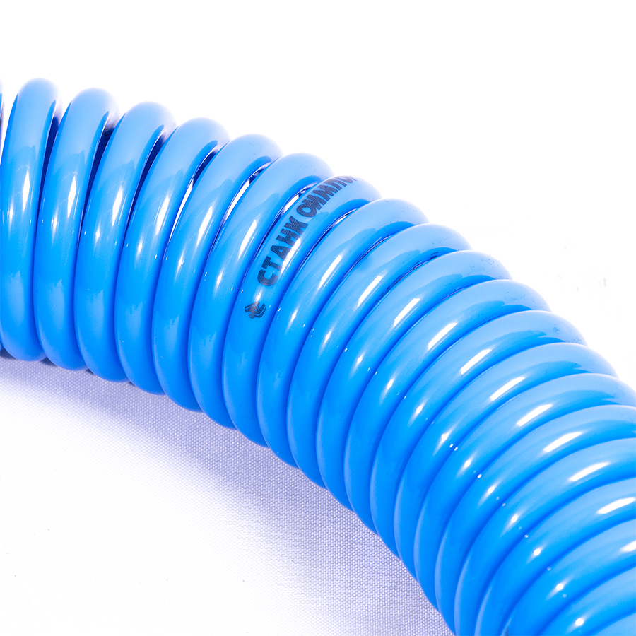 Шланг воздушный спиральный применяется для подачи воздуха от компрессора или линии сжатого воздуха к пневмоинструменту. За счет своей формы в виде спирали, шланг имеет достаточно компактный размер и не мешается под ногами.