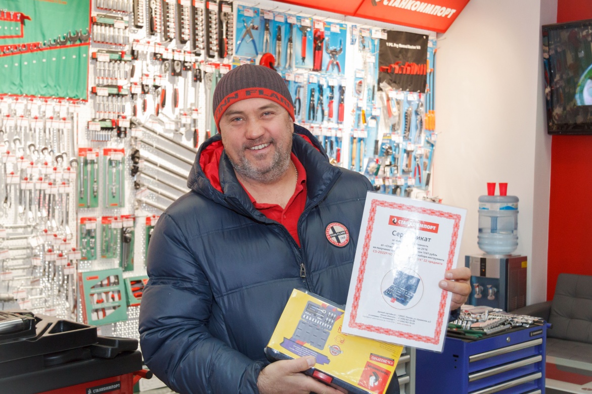 Александр Филиппов заслуженно получил на мероприятии сертификат "Станкоимпорт" за взятие горы на своем автомобиле, а сегодня он обменял сертификат на набор инструмента "Станкоимпорт", чему был очень рад.
